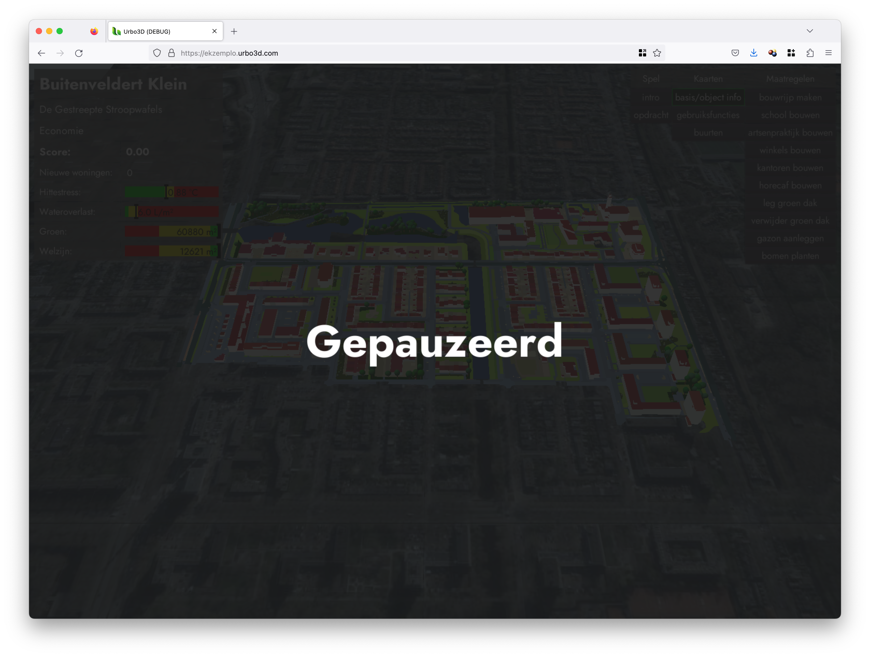 Halverwege de sessie kan je de teams vragen hoe het gaat, of er problemen zijn en of ze de opdracht goed hebben begrepen. Om de aandacht van de spelers te trekken kun je op de pauze-knop drukken (MC->pauze). De spelers krijgen dan een zwart scherm met ’Gepauzeerd’ erop en kunnen niet spelen tot je weer op het pauze-knop drukt.